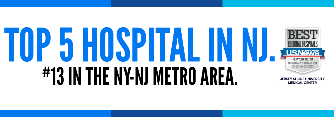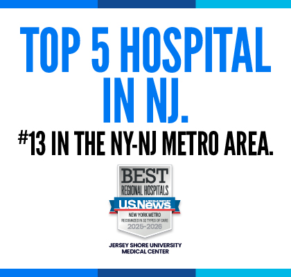 Nationally Recognized Specialties and Procedures & Conditions: In its annual rankings, U.S. News & World Report has ranked Jersey Shore University Medical Center the #5 hospital in New Jersey for 2025-2026. Three programs have been recognized as nationally High Performing, including Cardiology, Heart & Vascular Surgery, Geriatrics, and Pulmonology & Lung Surgery. In addition, 13 procedures and conditions have been recognized as High Performing, including Aortic valve surgery, Colon cancer surgery, Diabetes, Heart arrhythmia, Heart attack, Heart bypass surgery, Heart failure, Hip fracture, Hip replacement, Kidney failure, Leukemia, lymphoma & myeloma, Pacemaker implantation, and Stroke.